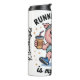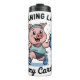 This humourous illustration features a cute, athletic pig in a blue workout outfit, holding a coffee cup and a ringing alarm clock. The pig has a cheerful, determined expression while running. The text at the top and bottom reads, "RUNNING LATE is my cardio," giving the art a very funny and relatable feel.