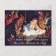 Beautiful Custom Christmas postcard depicts the nativity with the birth of Jesus and features Bible Verse Luke 2:11, "A saviour has been born to you; He is the Messiah, the Lord." The back greeting prayer can be modified with the details of your choice or deleted for a blank card.~