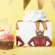 A scary lumberjack standing wrapping paper