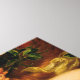 This design features a painting by Dante Gabriel Rossetti (1828–1882). It shows a mythological a siren in human form playing an instrument to lure sailors. The siren is an elegant and beautiful woman with long flowing red hair. She is wearing pink roses and she is surrounded by apples, apple blossoms and a bird, which is a seagull. The instrument being played has been described as a harp, but scholars have determined that it is a Japanese koto, a traditional 13-stringed zither-like instrument. The original painting was completed in 1877, and it is currently on display in the Harvard Art Museums in Cambridge, Massachusetts. Dante Gabriel Rossetti wrote the following poem in sonnet form to accompany the painting: "Her lute hangs shadowed in the apple-tree, / While flashing fingers weave the sweet-strung spell / Between its chords; and as the wild notes swell, / The sea-bird for those branches leaves the sea. / But to what sound her listening ear stoops she? / What netherworld gulf-whispers doth she hear, / In answering echoes from what planisphere, / Along the wind, along the estuary? / She sinks into her spell: and when full soon / Her lips move and she soars into her song, / What creatures of the midmost main shall throng / In furrowed surf-clouds to the summoning rune: / Till he, the fated mariner, hears her cry, / And up her rock, bare-breasted, comes to die?"