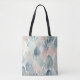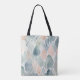 A seamless pattern of abstract leaf shapes in soft pastel colours of blue, green, and pink. The leaves have a watercolor-like texture and appear to be floating or overlapping against a light background tote bags