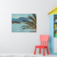 Summer paradise at Montenegro. Beautiful seascape with mountains and a palm tree for all nature and travel lovers. This Poster will especially work well with nautical and coastal home decor. You can delete the text "The boat sails by, the shore remains" or replace it with your own message (click "Personalise this template").