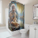 A Native Indian woman adorned in traditional attire sits gracefully by a tranquil river, accompanied by a majestic wolf