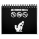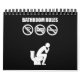 A set of bathroom rules with no wifi, no games and no mess icons and a silhouette person seating on a toilet.