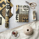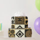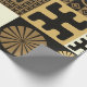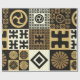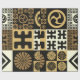 A set of japanese style seamless patterns, tribal and geometrical symbols, in a black and gold palette