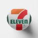 The design features the logo of the convenience store chain 7-Eleven. The logo includes a white numeral ‘7’ next to the word ‘ELEVEN’ written in green capital letters. Above ‘ELEVEN,’ there’s an orange horizontal rectangle, and to the left, a red vertical shape resembling a partially unfurled banner or flag. The background is green, and there’s a small registered trademark symbol (®) in red at the bottom right corner.