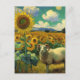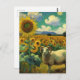 A Sheep with horns in the Sunflower Field Van Gogh Postcard