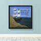 "A ship in harbour is safe but that is not what ships are built for" is a famous inspirational verse that inspires you to get out of your comfort zone or rut and explore, expand your horizons. Inspire and motivate yourself or a friend or loved one with this beautiful and unique design adapted from an original acrylic and mixed media collage on canvas, featuring a sailboat or tallship with large masts and sails, sitting in the harbour of a bay next to the sand.