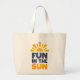A sign that says fun on the sun large tote bag