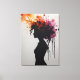 a silhouette of a woman with colourful paint splat canvas print