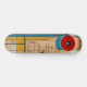 A skateboard deck with an illustration inspired by the bauhaus design school artists from the 1920s, frontal view