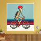 A cartoonish image of a skeleton wearing a crash helmet and riding a bicycle.