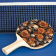 Overall, it's a nice product but for what you pay the quality isn't very good. The way it's glued together, as you can see in the pictures, is messy, the glue is visible and shiny, there's some ink staining that looks like black fluff but isn't, it won't come off. On the paddle's black surface there are also little white marks here and there. It's not too easy to show in the pictures because of the flash but I tried to showcase the little white blemishes that ruin a smooth black surface. This was meant to be a gift and it just looks sloppily put together unfortunately. A few imperfections that mar what could have been really great. The printing was neat.