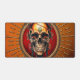A skull whose presence inspires both awe and fascination. Its skull is marked by time, bearing a radiant treasure in its centre, a gemstone that pulsates with shimmering colours and holds the secret of life and death. The skull's eye sockets glow like two glowing coals, bright red and piercing, as if they could see the deepest secrets of the soul. A wreath of filigree leaves, whose green veins contrast with the pale bone. This living embrace symbolises the eternal cycle of life and death, while an artfully crafted chain encircles it - a sign of the inseparable connection between the worlds.