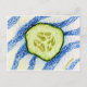 A pencil and pen drawing of a slice of a cucumber on a tablecloth.