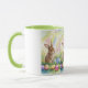 A very cute, furry bunny next to different coloured Easter eggs that will give you feel good feelings of happiness. A rainbow in the background adds to the beautiful picture & feel good on this image. Add these mugs to your collection to be the centre of attention with family, friends and colleagues! A 2 tone mug means you can choose what colour you want the inside and cup ear to be to compliment your environment. These mugs are ideal for celebrating Easter or everyday use in the house and office. The cute furry bunnies will bring a happy feeling when looking at them and sipping your drink! These mugs can also be taken with you on hiking and camping trips as well as travelling! These mugs will also serve as ideal gifts for young and old!