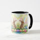 A very cute, furry bunny next to different coloured Easter eggs that will give you feel good feelings of happiness. A rainbow in the background adds to the beautiful picture & feel good on this image. Add these mugs to your collection to be the centre of attention with family, friends and colleagues! A 2 tone mug means you can choose what colour you want the inside and cup ear to be to compliment your environment. These mugs are ideal for celebrating Easter or everyday use in the house and office. The cute furry bunnies will bring a happy feeling when looking at them and sipping your drink! These mugs can also be taken with you on hiking and camping trips as well as travelling! These mugs will also serve as ideal gifts for young and old!