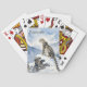 A pretty wildlife personalized playing cards with an illustration of a majestic snow leopard perched on a craggy, snow-covered peak, gazing out at a vast, frozen mountain range.