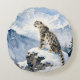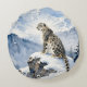 A Snow Leopard on Snowy Peak Round Cushion