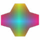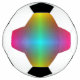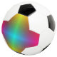 A soccer ball with a rainbow gradient pattern, combining pink, blue, and orange hues. The design is shown both on the rounded ball and flat template.