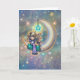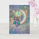 A Soft Night Cute Little Girl with Kitty on Moon Card