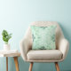 The throw pillow has a soft green pastel coloring with white and dark green designs on it. This throw pillow gives a feeling cheer along with a soft touch