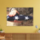 A soldier holds the United States flag Canvas Print