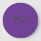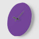A solid purple background with a white square cent large clock