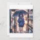 This image depicts a solitary anime character holding an umbrella on a rain-drenched urban night. The city lights create a reflective glow on the wet surfaces, adding to the serene yet moody atmosphere.