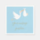 Featuring a cute stork carrying a very special delivery, on a soft blue background, this napkin is perfect for a special baby boy shower, sprinkle or couples shower. Customise your event details in chic gold text. Designed by Thisisnotme©