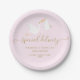Designed to coordinate with our Special Delivery couples baby shower/sprinkle collection. Featuring a cute stork carrying a very special delivery, on a soft pink background, these paper plates are perfect for a special baby shower/sprinkle. Customise your event details in chic gold text.
