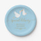 Featuring a cute stork carrying a very special delivery, on a soft blue background, these paper plates are perfect for a special baby boy shower, sprinkle or couples shower. Customise your event details in chic gold text. Designed by Thisisnotme©