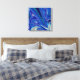Blue, white, and teal abstract canvas print representing a splash of water. Signed and dated with year created.