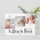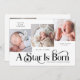 Welcome your little one to the world and share the joy of the season with our elegant Christmas birth announcement card, beautifully titled “A Star Is Born.” Featuring three adorable baby photos on the front and one on the back, this design combines modern typography with festive charm. Personalise it with your baby’s name, birth date, weight, and length, plus a heartfelt thank-you message to friends and family. Perfect for sending holiday greetings while introducing your newest family member. Ideal for winter births, holiday baby showers, or as a keepsake for loved ones. Printed on high-quality card stock with full-colour photo printing for a truly special announcement. Background is white.