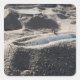 A static display of an ordnance shell and a mine lay half-buried in the sand featured with beach.
