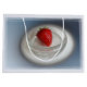 A strawberry in a glass cup