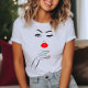 A stylised Womans Features T-Shirt. © Tees & Sweats at Zazzle. This tee has a stylised womans face with red lips and a raised hand with red finger nails on it.
