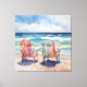 A Sunny Day for Two Colourful Coastal Beach Digita Canvas Print