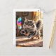 A sweet postcard to say hi and keep in touch with a friend or family member when you are away featuring a sweet fluffy kitten having fun chasing a feather. Total cuteness.