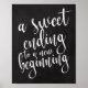 An elegant cutting edge wedding sign, features the text "a sweet ending to a new beginning" in a extroverted script font, the brush texture adds a spontaneous and playful feeling. The background colour can personalised according to your needs and preferences, please contact me if you have any special request.