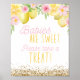 A baby shower sweet treat favour sign featuring watercolor lemons and pink blossoms perfect for a summery pink lemonade baby shower. Part of a collection.