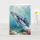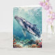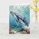 A oceanic themed thinking about you card with a nautical poem inside. The front has a beautiful illustration of an impasto style whale swimming deep in the sea by vibrant colorful coral.