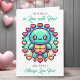 An adorable Valentine's Day card with a turtle theme. A cute Kawaii turtle surrounded by hearts in teal and pink and a cute romantic puns. Inside is a surprise word search with words related to love and Valentine's Day.
