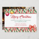 A pretty Christmas card in red, green and and off white with bows and ornaments and a sweet whimsical holiday saying. On the back you can you add your favorite family photo.