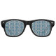 A symmetrical blue and white rug with intricate mo retro sunglasses