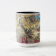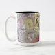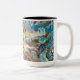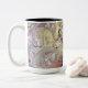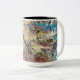 A unique coffee mug with an original artwork in teal, pink, and gold by WestJack Studio. Designed in BC.