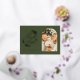 A modern dark green and gold foil religious holiday card. On the reverse is a pattern of green and navy holly and pine leaves. Personalise with your favourite photo and sign off.