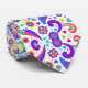 A tie with a vibrant, colorful paisley pattern