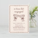 A Tini Bit Engaged" Bridal Shower Invitation. Celebrate the bride-to-be with this chic and coquette bridal shower invitation! Featuring a quirky hand-drawn espresso martini glass adorned with a delicate bow, this design is as playful as it is sophisticated. The warm brown tones and wavy frame add a touch of trendy charm, perfect for a fun and stylish gathering. Whether you're hosting a cocktail soirée or an intimate brunch, this invitation sets the tone for an unforgettable event.