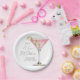 Tini Bit Older Birthday Paper Plate. This playful paper plate features a watercolor pink cosmopolitan martini glass with a lime twist on the right side, paired with the phrase “A Tini Bit Older” at the top in stylish handwritten script for a fun, cheeky vibe. The birthday person's name and age are displayed at the bottom left in a crisp mix of serif and script fonts. Perfect for any age, but especially cute for a 21st birthday, these plates add a festive touch to your party tableware and make your celebration extra memorable.
